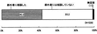 対処に際して部外者への相談の有無を見ると、「相談した」とするものが229件・43.3%、「相談していない」とするものは55.2%であった。
