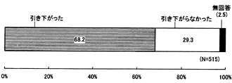 前記6「対処の仕方」において、少なくとも不当要求等の一部を拒否したと考えられるもの515件(「不当要求等の一部に応じた」、「当初拒否したが最終的には不当要求等に全面的に応じた」、「当初拒否したが、最終的には不当要求等の一部に応じた」、「全ての不当要求等を拒否した」)について、不当要求等に従わなかった時の相手方の行動をみると、「引き下がった」(68.2%)とするものが7割近くにのぼった。「引き下がらなかった」とするのものは151件・29.3%あった。 「平成14年度行政対象暴力に関するアンケート」における同様の質問(ただし、複数回答)に対する回答結果では、「引き下がった」をあげたものが46.6%であり、今回は「引き下がった」とする割合が高くなっている。