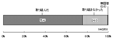 過去4年間における不当要求等対策への取組みについては、全回答のうち、「取組んだ」とするものが2,230件(75.4%)、「取り組まなかった」が710件(24.0%)となった。