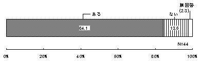 暴力団等の排除措置については、全回答のうち、過去に暴力団等の排除措置をとったことが「ない」とするものが9割以上(2,696件・91.1%)を占めた。「ある」としたものは44件で1.5%となっている。
