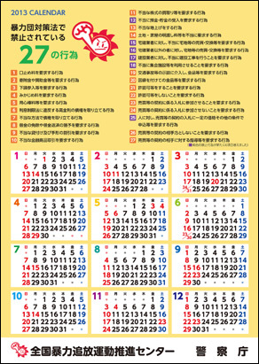 カレンダー | 身近に貼って暴排意識を高めてください。 |