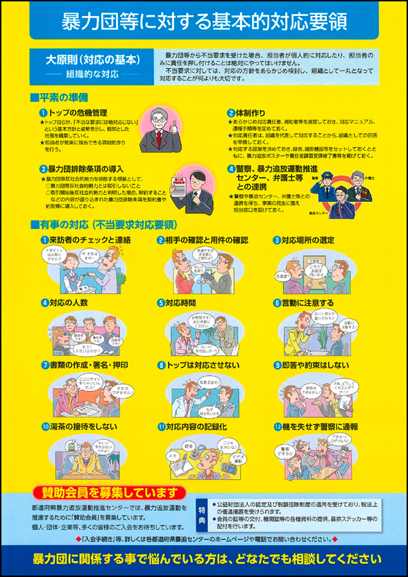 | リーフレット | A4版、暴排の基本は「三ない運動+1」です。 |